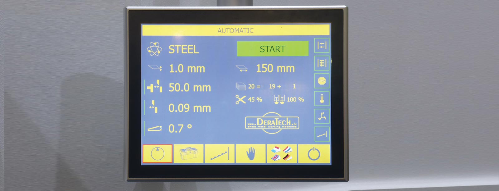 En el modo automático, el operador solo selecciona el tipo y el grosor del material y el tamaño del calibre trasero antes de presionar inicio y la máquina se configurará automáticamente lista para usar.