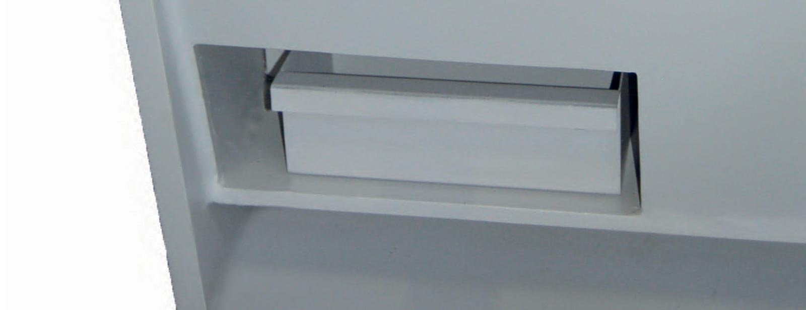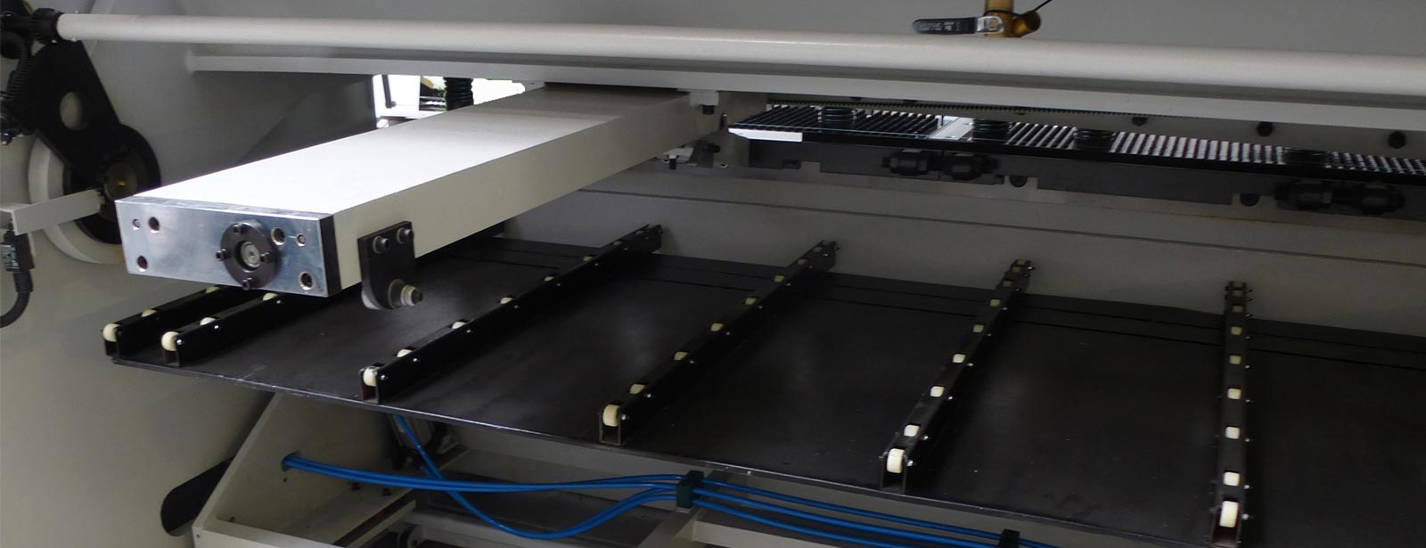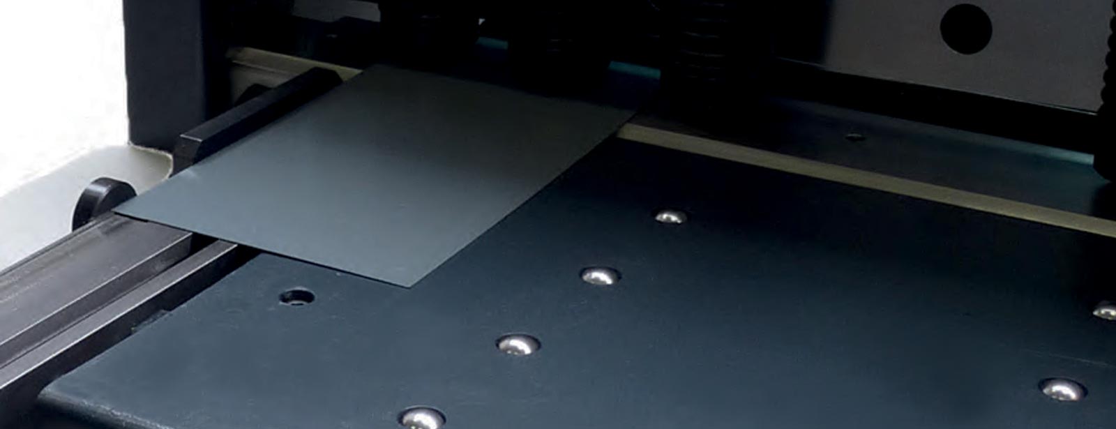 Durante el proceso de corte, los brazos de soporte descienden en paralelo: la lámina permanece completamente soportada durante el proceso de corte. Solo después de terminar el corte, los brazos de soporte descenderán por completo para que la placa de corte pueda deslizarse hacia atrás.