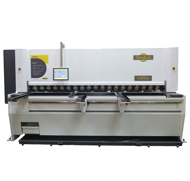 En comparación con todas las otras marcas de máquinas, la cizalla Deratech VARIA es la que tiene el ángulo de corte más pequeño, reduciendo la distorsión al cortar placas delgadas y gruesas a un mínimo absoluto.